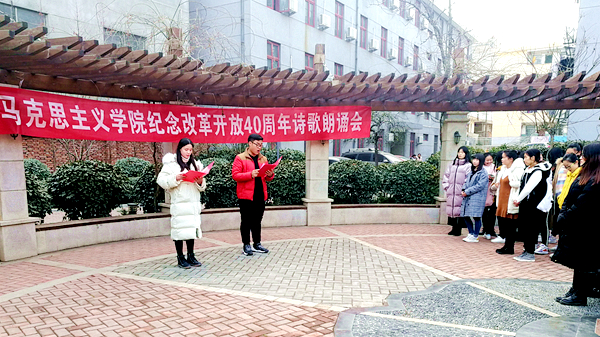 12月18日下午,馬克思主義學(xué)院在莘子苑舉辦慶祝改革開放40周年詩歌朗誦會(huì),教師代表及在校學(xué)生200余人參加活動(dòng)。