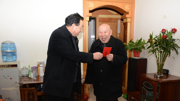 1月26日,副校長(zhǎng)魏書(shū)堂在院長(zhǎng)辦公室、離退休工作處負(fù)責(zé)人的陪同下,登門(mén)看望了退休校領(lǐng)導(dǎo)劉文斌,介紹了學(xué)校一年來(lái)的發(fā)展變化,代表學(xué)校感謝老領(lǐng)導(dǎo)長(zhǎng)期以來(lái)對(duì)學(xué)校工作的關(guān)心和支持,詳細(xì)詢(xún)問(wèn)了他的生活以及身體健康情況,并祝愿老領(lǐng)導(dǎo)新年快樂(lè),闔家幸福,希望他保重身體,安享幸福生活。之后,魏書(shū)堂一行走訪(fǎng)慰問(wèn)了牛樹(shù)林、郭貞賢、田希民、李英杰等10位離退休老同志。每到一戶(hù),魏書(shū)堂都詳細(xì)詢(xún)問(wèn)老同志的身體狀況和生活情況,囑咐他們保重身體,衷心感謝老同志們?yōu)閷W(xué)校改革與發(fā)展所作的無(wú)私奉獻(xiàn),同時(shí)祝愿大家身體健康、家庭幸福,希望老同志們繼續(xù)關(guān)心學(xué)校的發(fā)展建設(shè),多提寶貴意見(jiàn)。老同志們對(duì)學(xué)校給予他們的關(guān)心和問(wèn)候表示感謝,他們紛紛表示,將不負(fù)學(xué)校的囑托,一如既往地關(guān)注和支持學(xué)校發(fā)展。