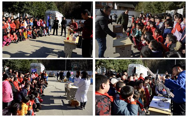 龍治剛表示,此次活動(dòng)既是我校2019年“雙百工程”工作的完美收官,也拉開了我校助力2020年實(shí)現(xiàn)全國(guó)全面脫貧、全面實(shí)現(xiàn)小康社會(huì)的序幕,意義重大。他表示,我校作為“雙百工程”校地合作單位,始終按照省委省政府工作部署,與丹鳳縣積極進(jìn)行對(duì)接,通過頂崗支教、舉辦學(xué)前教育論壇、加強(qiáng)基礎(chǔ)教育師資培訓(xùn)、助力少兒足球示范幼兒園建設(shè)等方式,積極拓展對(duì)丹鳳縣基礎(chǔ)教育的幫扶面,創(chuàng)新幫扶形式,為助力丹鳳縣基礎(chǔ)教育扶貧注入了全新的活力,取得了可喜的成績(jī),切實(shí)踐行了我校根植地方、服務(wù)商洛的使命擔(dān)當(dāng)。今天的活動(dòng),讓科普前沿貼近校園,拓展了山區(qū)孩子們的知識(shí)視野、啟迪了他們的創(chuàng)新思維,激發(fā)了他們愛科學(xué)、學(xué)科學(xué)的熱情和科學(xué)報(bào)國(guó)的志向。今后,我校將繼續(xù)與丹鳳縣進(jìn)行深入合作,開出校地合作友誼之花、發(fā)展之果,使合作越來越密切、有成效。龍治剛還與現(xiàn)場(chǎng)小學(xué)生進(jìn)行親切互動(dòng),詢問他們愛科學(xué)嗎?想上大學(xué)嗎?并鼓勵(lì)小朋友們好好學(xué)習(xí),天天向上,成為國(guó)家棟梁。