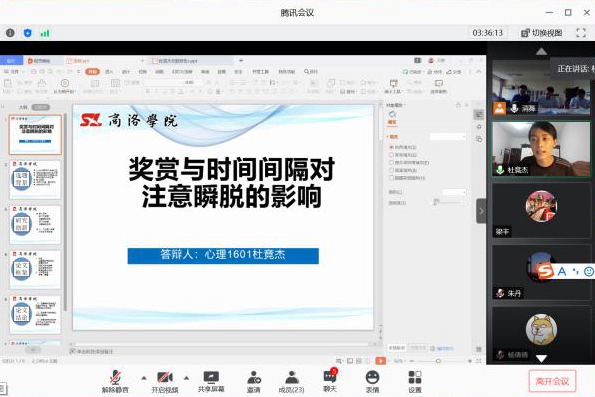 ——線上答辯、井然有序。各學(xué)院根據(jù)實際情況采取線下線上相結(jié)合的方式組織論文答辯。近2000名學(xué)生使用騰訊會議、騰訊課堂、釘釘?shù)确€(wěn)定、流暢的網(wǎng)絡(luò)平臺,通過在線直播互動或視頻會議方式進(jìn)行論文答辯。各學(xué)院根據(jù)本院師生的論文寫作與指導(dǎo)進(jìn)展情況,認(rèn)真組織籌劃,嚴(yán)守時間節(jié)點,科學(xué)制定本學(xué)院畢業(yè)論文(設(shè)計)答辯方案及成績評定規(guī)范,提前做好在線答辯細(xì)節(jié)演練,分配好答辯小組,嚴(yán)密答辯流程,確保了答辯工作與往年現(xiàn)場答辯相比等質(zhì)同效、水準(zhǔn)不降。在線上答辯中,合理分配任務(wù),做好排序通知,保持答辯順暢進(jìn)行。在線下現(xiàn)場答辯中,做好室內(nèi)消殺、開窗通風(fēng),避免人員聚集,嚴(yán)格落實各項防控措施。