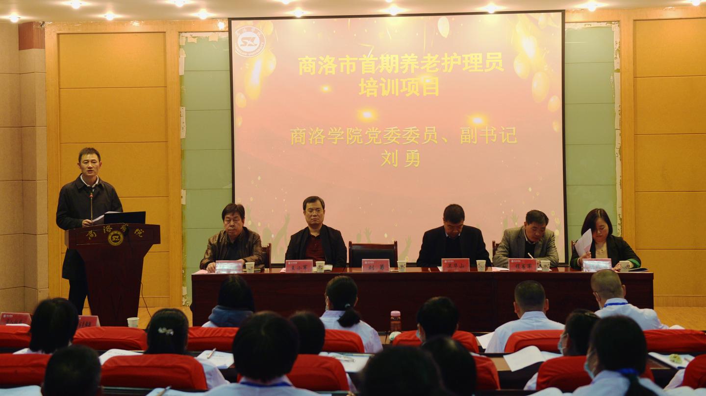 劉勇代表學校對參訓學員表示熱烈歡迎,對商洛市民政局、商洛市人社局、高新區(qū)人社局等部門關心支持養(yǎng)老護理事業(yè)發(fā)展表示感謝,對多年真誠為老人服務的養(yǎng)老護理員表示敬意。他向與會人員介紹了我校的基本情況和歷年來面向社會開展的各類繼續(xù)教育培訓,表示將充分發(fā)揮學校作為陜西省養(yǎng)老護理員培訓基地的職能,秉承“關愛老人 服務老人”的宗旨,積極助力我市養(yǎng)老護理員培訓體系建設和高效高質(zhì)發(fā)展。他希望學員能夠端正態(tài)度努力學、多動腦筋用心學、擠出時間勤奮學,切實通過培訓提高養(yǎng)老護理專業(yè)技能。
