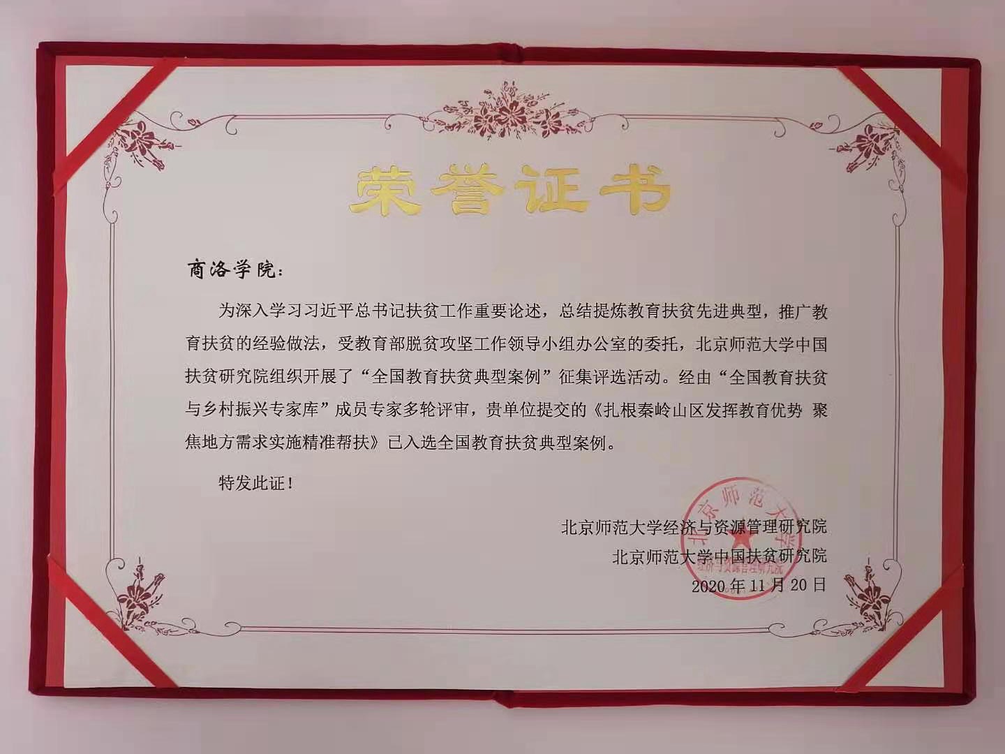 受教育部脫貧攻堅領(lǐng)導(dǎo)小組辦公室委托,北京師范大學(xué)中國教育扶貧研究院于2020年組織開展了“全國教育扶貧典型案例”征集評選活動。此次評選活動共有全國千余所高校、中小學(xué)及地方教育行政部門參加,最終選出全國教育扶貧典型案例235項。我?!半p百工程”辦公室提交的《扎根秦嶺山區(qū)發(fā)揮教育優(yōu)勢 聚焦地方需求實施精準(zhǔn)幫扶》入選全國教育扶貧典型案例,并于近期正式獲頒證書。我校也因此成為陜西省獲此殊榮的2所地方本科院校之一。