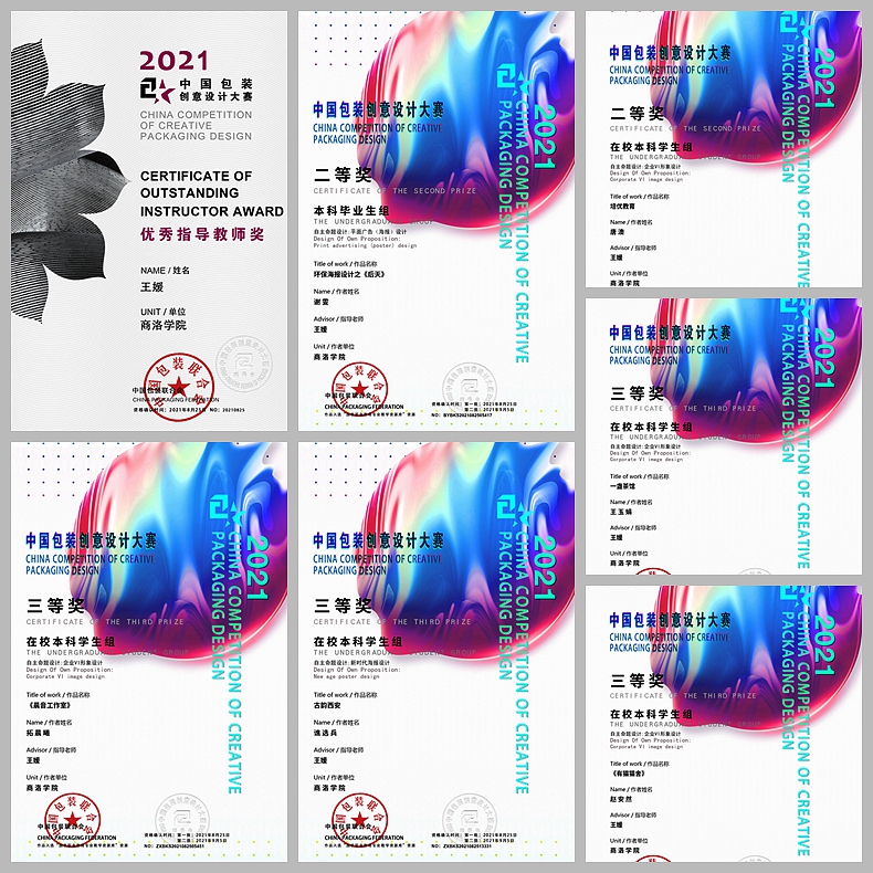 近日,由中國(guó)包裝聯(lián)合會(huì)舉辦的2021年中國(guó)包裝創(chuàng)意設(shè)計(jì)大賽圓滿結(jié)束,我校師生踴躍參賽,共獲得二等獎(jiǎng)2項(xiàng),三等獎(jiǎng)11項(xiàng),優(yōu)秀獎(jiǎng)14項(xiàng),1名教師獲得“優(yōu)秀指導(dǎo)教師”獎(jiǎng)。