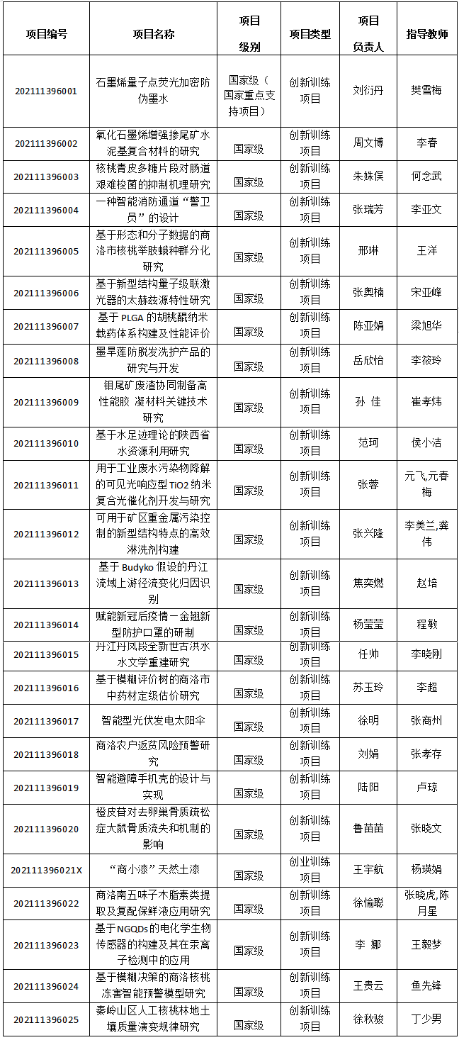 2021年國(guó)家級(jí)大學(xué)生創(chuàng)新創(chuàng)業(yè)訓(xùn)練計(jì)劃項(xiàng)目一覽表