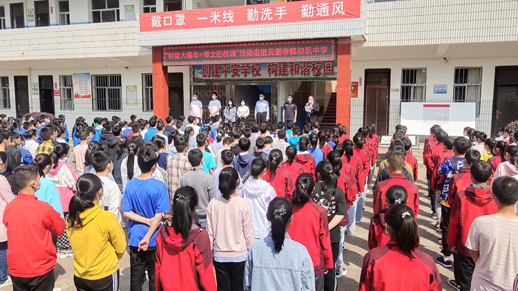 5月24日,2022年商洛市文化科技衛(wèi)生“三下鄉(xiāng)”集中示范暨第30屆“科技之春”宣傳月活動啟動儀式在鎮(zhèn)安縣云蓋寺鎮(zhèn)舉行,市委常委、市委宣傳部部長、市文化科技衛(wèi)生“三下鄉(xiāng)”活動領(lǐng)導小組組長賈永安出席活動并講話。云蓋寺鎮(zhèn)中學師生、各界群眾代表參加啟動儀式。我?!傲鲃涌萍拣^”師生為云蓋寺鎮(zhèn)中學等學校帶來了豐富多彩的科普活動。