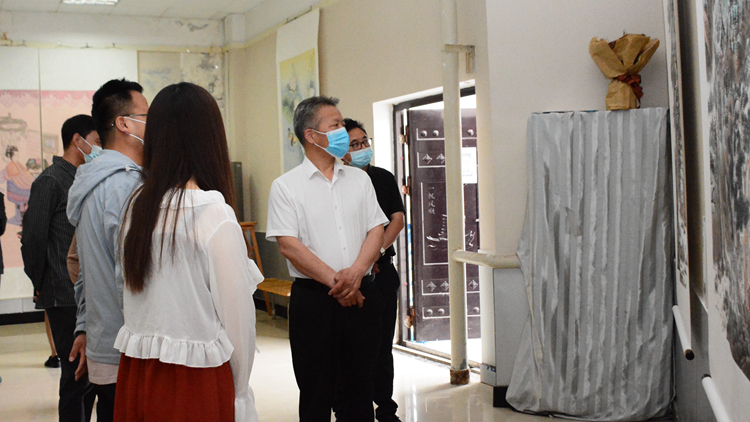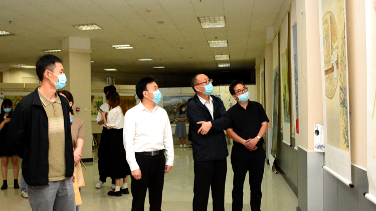 5月31日上午,校黨委書記張志昌,黨委副書記彭虎軍、劉勇,副校長劉寶盈前往圖書館藝術展廳參觀指導藝術學院美術學國畫方向2022屆畢業(yè)作品匯報展。黨委辦公室負責人、藝術學院黨政負責人和師生代表陪同參觀。