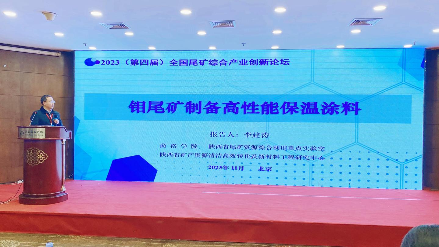我校李建濤博士在大會(huì)上作了題為“鉬尾礦制備高性能保溫涂料”的學(xué)術(shù)報(bào)告,介紹了我校扎根秦嶺,變“尾”為寶,守護(hù)綠水青山,服務(wù)區(qū)域發(fā)展的辦學(xué)特色。分享了鉬尾礦制備保溫真石漆、復(fù)合保溫涂料、二氧化硅氣凝膠相關(guān)關(guān)鍵技術(shù)。