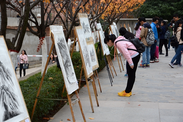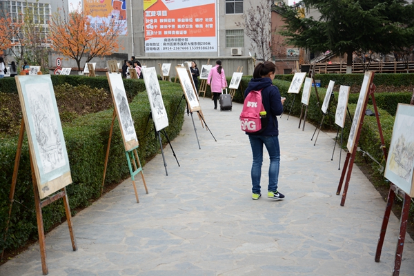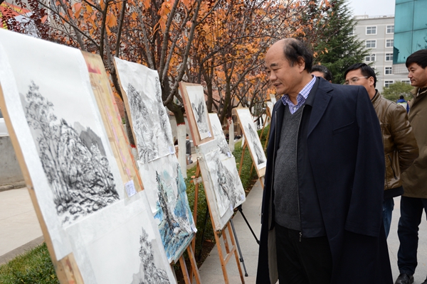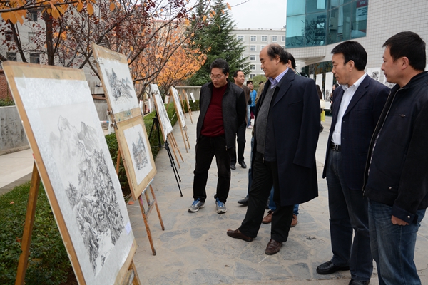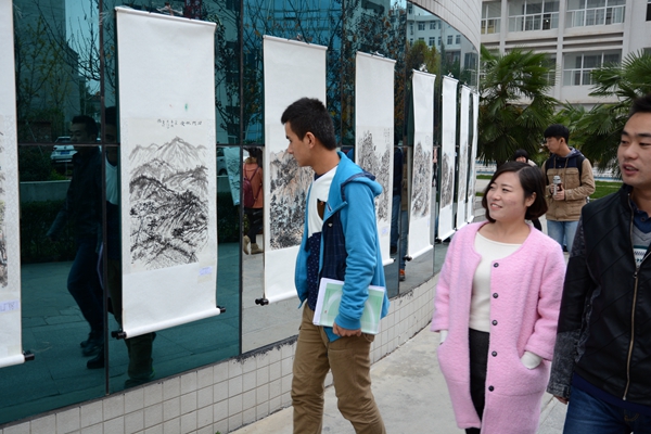 11月13日,我校1號教學樓前的通道兩側(cè)擺出了百余幅山水寫生國畫,引得過往師生紛紛駐足觀賞。這是由藝術(shù)學院舉辦的“秦嶺山水寫生掠影”作品展,匯集了美術(shù)學2013級105名學生的課程實踐作品。校黨委書記、校長劉建林,黨委副書記彭虎軍參觀了畫展并對我校學生的作品給予了高度評價。