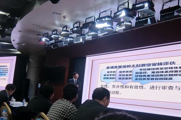 為推動高等教育內(nèi)涵建設(shè)和特色發(fā)展,提升本科教學(xué)質(zhì)量,保障審核評估工作順利推進,教育部高等教育教學(xué)評估中心于11月11日至13日在西安舉辦了2015年第四期高等學(xué)校本科教學(xué)工作審核評估培訓(xùn)研討會。來自全國110多所高校的400多名代表參加了會議。與會的教育部領(lǐng)導(dǎo)、專家學(xué)者分別從審核評估頂層設(shè)計、審核評估項目及其具體要求、教學(xué)質(zhì)量保障體系構(gòu)建、審核評估與教學(xué)改革、基本狀態(tài)數(shù)據(jù)庫建設(shè)等方面對審核評估進行了解讀。我校教學(xué)評估中心、教務(wù)處、干部人事處及相關(guān)二級學(xué)院代表參加了會議。