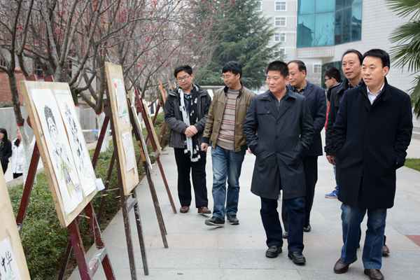 為豐富和創(chuàng)新學(xué)生工作的內(nèi)容與形式,探索藝術(shù)生思想政治教育的有效途徑,本學(xué)期來(lái),藝術(shù)學(xué)院黨總支組織、策劃了學(xué)生主題思想教育系列活動(dòng)。12月7日,活動(dòng)成果在我校1號(hào)教學(xué)樓走廊和北院中心花園展出。校黨委副書(shū)記、副校長(zhǎng)范新會(huì),黨委副書(shū)記彭虎軍前往參觀,對(duì)藝術(shù)學(xué)院將學(xué)生創(chuàng)新實(shí)踐與思想政治教育工作結(jié)合的做法給予高度評(píng)價(jià)。黨委宣傳部、學(xué)生處、發(fā)展規(guī)劃與合作交流處、藝術(shù)學(xué)院黨總支負(fù)責(zé)人陪同參觀。