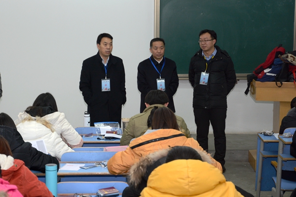 為進(jìn)一步嚴(yán)肅考風(fēng)考紀(jì),加強對考務(wù)工作的管理,1月5日,校領(lǐng)導(dǎo)劉建林、范新會、王思懷、魏書堂、彭虎軍、劉寶盈分頭深入期末考試考場,視察期末考試工作。