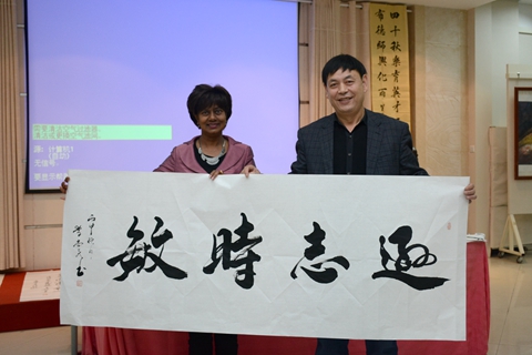報(bào)告會(huì)結(jié)束后,劉寶盈陪同克里斯汀參觀了我校特色展廳。