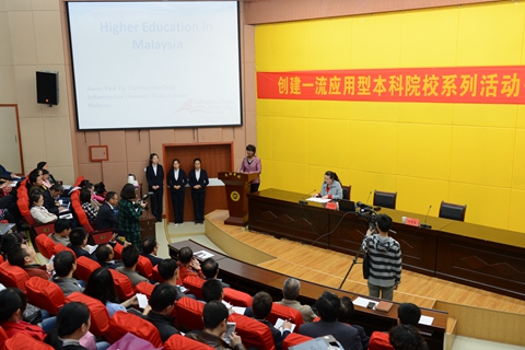 10月22日上午,馬來(lái)西亞吉隆坡建設(shè)大學(xué)校長(zhǎng)克里斯汀來(lái)我校為師生作題為《馬來(lái)西亞高等教育概況及研究》的學(xué)術(shù)報(bào)告。各二級(jí)學(xué)院負(fù)責(zé)人、師生代表及吉隆坡建設(shè)大學(xué)來(lái)我校交流學(xué)生參加報(bào)告會(huì)。報(bào)告會(huì)由副校長(zhǎng)劉寶盈主持。