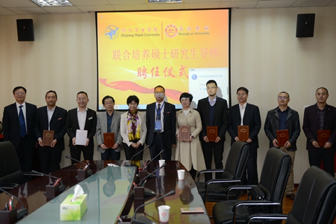 10月23日下午,我校與浙江萬里學(xué)院舉辦了“聯(lián)合培養(yǎng)研究生”碩士生導(dǎo)師聘任儀式。我校王新軍等5位教師受聘為浙江萬里學(xué)院碩士研究生導(dǎo)師。來自陜西森弗天然品有限公司、陜西天士力植物藥業(yè)有限公司的王軍等5位專家同時(shí)受聘為浙江萬里學(xué)院校外碩士研究生導(dǎo)師。副校長劉寶盈、浙江萬里學(xué)院副校長錢國英出席聘任儀式??萍继幪庨L李繼高主持聘任儀式。