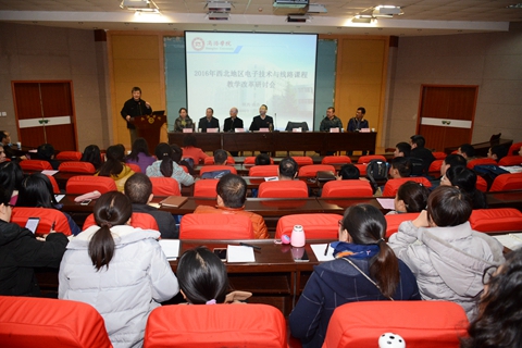 12月3日,2016年西北地區(qū)電子技術(shù)與線路課程教學改革研討會在我校圖書館一樓報告廳舉行,研討會圍繞“發(fā)揮網(wǎng)絡(luò)教育優(yōu)勢,探索電子技術(shù)、電子線路課程教學內(nèi)容與教學方法的改革與創(chuàng)新思路”展開研討交流。副校長劉寶盈出席研討會開幕式。