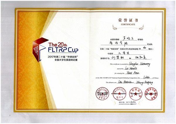 “外研社杯”全國大學生英語辯論賽是唯一的全國性英語辯論賽事,自1997年起每年舉辦一屆,由共青團中央、全國學聯(lián)及北京外國語大學聯(lián)合主辦,外語教學與研究出版社承辦,大賽采用英式辯論體系,與“世界大學生辯論賽”賽制接軌,是目前國內水平最高、規(guī)模最大的英語辯論比賽,代表了我國英語口語教學的最高水平。此次比賽有來自四川、重慶、陜西、河南、山西、新疆、甘肅、寧夏、西藏、青海、內蒙古等11個?。ㄖ陛犑小⒆灾螀^(qū))的107所高校參加。