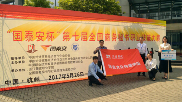 5月27日,第七屆全國(guó)商務(wù)秘書職業(yè)技能大賽在浙江警官職業(yè)學(xué)院舉行。在本科組224名選手的激烈角逐中,我校語(yǔ)言文化傳播學(xué)院秘書學(xué)系學(xué)生劉尚靈、孟丹、王源、王燕妮表現(xiàn)出了優(yōu)秀的綜合素養(yǎng)和扎實(shí)的專業(yè)技能,榮獲團(tuán)體二等獎(jiǎng);王源、王燕妮榮獲個(gè)人綜合二等獎(jiǎng)。文傳學(xué)院教師黃元英、張曉倩、鐘思遠(yuǎn)被評(píng)為“優(yōu)秀指導(dǎo)教師”。