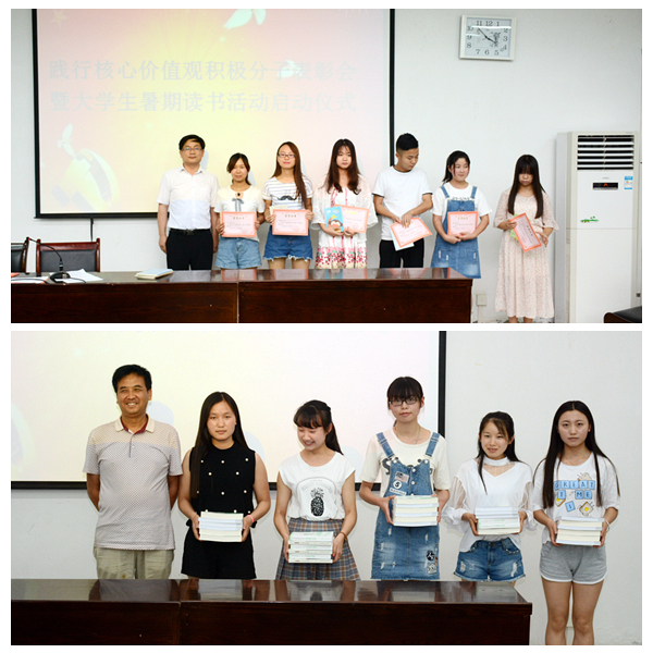 為貫徹落實(shí)習(xí)近平總書記關(guān)于全國哲學(xué)社會科學(xué)工作重要講話精神,宣傳弘揚(yáng)社會主義核心價(jià)值觀,推動大學(xué)生閱讀經(jīng)典著作,學(xué)習(xí)社會科學(xué),堅(jiān)定理想信念,6月29日,我校思政部舉辦“踐行核心價(jià)值觀積極分子表彰會暨大學(xué)生暑期讀書活動”啟動儀式。副校長劉勇出席表彰會。會議由思政部副主任李龍強(qiáng)主持。思政部教師為受表彰學(xué)生發(fā)放了證書和暑期閱讀書籍。