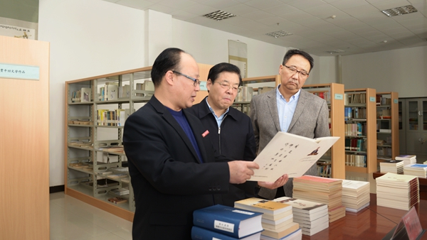 李穎科一行深入我校商洛文化暨賈平凹研究中心、商洛紅色文化資料館和學校藝術(shù)展廳等處,詳細了解了我校哲學社會科學工作開展情況。李穎科表示,商洛學院扎根商洛歷史文化、紅色文化土壤,培育了一批區(qū)域特色鮮明的人文社科品牌,希望商洛學院繼續(xù)深入挖掘商洛區(qū)域歷史文化資源,加大哲學社會科學研究投入,多出新成果、新亮點。省社科聯(lián)會積極支持學校哲學社會科學工作,在平臺建設(shè)、項目申報上給予政策和資金支持,共同為繁榮和發(fā)展哲學社會科學做出貢獻。