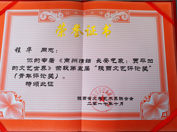 10月26日,在第五屆陜西省文藝評(píng)論頒獎(jiǎng)會(huì)上,我校人文學(xué)院程華教授專著《商州情結(jié) 長安氣象:賈平凹的文藝世界》榮獲“陜西文藝評(píng)論獎(jiǎng)”。