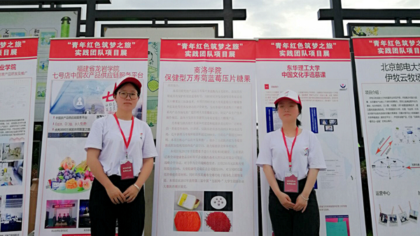 7月12日至16日,第四屆中國(guó)“互聯(lián)網(wǎng)+”大學(xué)生創(chuàng)新創(chuàng)業(yè)大賽“青年紅色筑夢(mèng)之旅”全國(guó)對(duì)接活動(dòng)在江西舉行。健康學(xué)院教師任嘉瑜、生物學(xué)院學(xué)生牛仙,代表《保健型萬(wàn)壽菊藍(lán)莓壓片糖果》團(tuán)隊(duì)參加此次活動(dòng),這是我校師生首次參加全國(guó)“互聯(lián)網(wǎng)+”系列活動(dòng)。