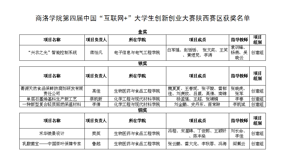 自2015年“互聯(lián)網(wǎng)+”大賽開展以來,我校把大賽作為應(yīng)用型人才培養(yǎng)的重要平臺,積極開展教學(xué)改革探索,把創(chuàng)新創(chuàng)業(yè)教育融入人才培養(yǎng),切實提高學(xué)生的創(chuàng)新精神、創(chuàng)業(yè)意識和創(chuàng)新創(chuàng)業(yè)能力。學(xué)校制定了《商洛學(xué)院學(xué)生創(chuàng)新創(chuàng)業(yè)教育實施方案》《商洛學(xué)院學(xué)生創(chuàng)新創(chuàng)業(yè)學(xué)分認(rèn)定辦法》,建立了由54名教師組成的校級創(chuàng)新創(chuàng)業(yè)教育專家?guī)?,建有校級和院級眾?chuàng)空間,培育、孵化創(chuàng)新創(chuàng)業(yè)項目,對先進集體、優(yōu)勝團隊及標(biāo)兵、優(yōu)秀指導(dǎo)教師等進行表彰獎勵。為做好本屆大賽各項工作,我校成立了以校長為組長的校賽組委會,制定具體實施方案,鼓勵激勵廣大學(xué)生積極參加。針對288個參賽項目,學(xué)校聘請校外專家對項目負(fù)責(zé)人及指導(dǎo)教師進行了多輪培訓(xùn),對項目精心打磨。經(jīng)過二級學(xué)院院內(nèi)賽和校內(nèi)預(yù)賽、初賽、決賽,評選出校級金獎10項、銀獎20項、銅獎30項。在暑假期間,教務(wù)處組織校級10項金獎項目負(fù)責(zé)人和指導(dǎo)教師進行封閉訓(xùn)練,遴選9個項目代表學(xué)校參加陜西省復(fù)賽,最終6項獲獎。