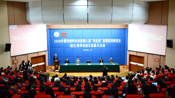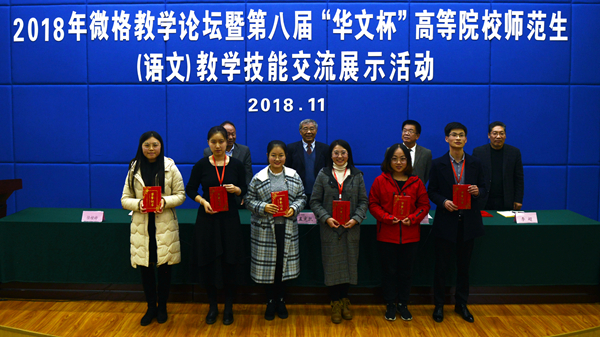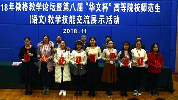 11月10日至11日,由中國教育技術(shù)協(xié)會微格教學專業(yè)委員會和我校主辦的2018年全國微格教學論壇暨第八屆“華文杯”高等院校師范生(語文)教學技能競賽順利舉行。來自全國70多所高校的410名參賽選手參加了大賽。