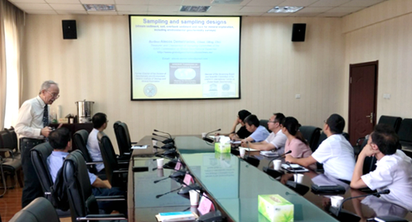 座談會(huì)后,Dr. Zhang Chaosheng以《大數(shù)據(jù)時(shí)代基于機(jī)器學(xué)習(xí)的地球化學(xué)變量的空間分析》為題作了學(xué)術(shù)報(bào)告,Prof. Alecos Demetriades以《采樣和采樣設(shè)計(jì)》《如何撰寫(xiě)英文論文》為題作了兩場(chǎng)學(xué)術(shù)報(bào)告。報(bào)告后,地理專(zhuān)業(yè)教師們圍繞大數(shù)據(jù)處理、機(jī)器學(xué)習(xí)、空間變異、地球化學(xué)研究與采樣方法、論文寫(xiě)作等方面與兩位專(zhuān)家進(jìn)行了深入交流,報(bào)告會(huì)氣氛活躍,效果良好。