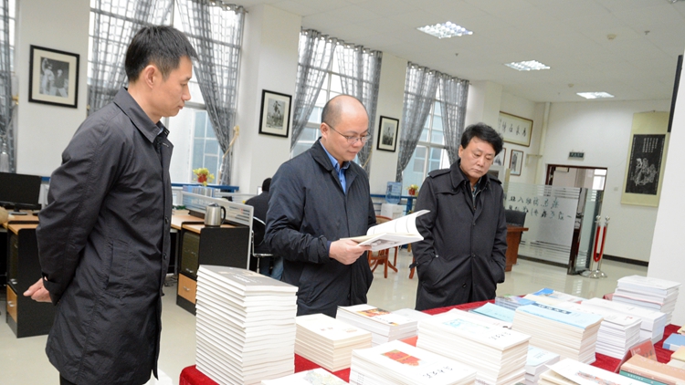 余有根一行在劉勇的陪同下,實地參觀了我校秦嶺植物標本陳列室、陜西省尾礦資源綜合利用重點實驗室、商洛紅色文化資料館、商洛文化暨賈平凹研究中心和藝術(shù)展廳等特色展館(室)。