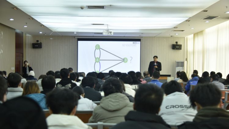 會(huì)后,泰國(guó)莊棚皇家大學(xué)工業(yè)技術(shù)學(xué)院助理教授Choat Inthawongse以《發(fā)現(xiàn)網(wǎng)絡(luò)科學(xué):第三個(gè)千年的交叉學(xué)科》為題,為電信學(xué)院、生物學(xué)院和化材學(xué)院師生作學(xué)術(shù)報(bào)告,并宣講了泰國(guó)國(guó)立莊棚皇家大學(xué)碩士培養(yǎng)項(xiàng)目。