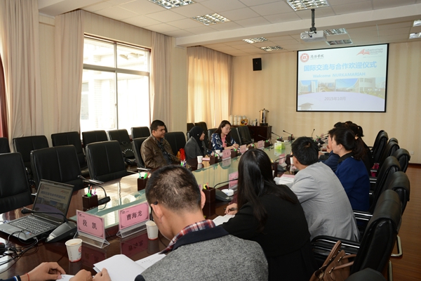 10月19日,應(yīng)我校發(fā)展規(guī)劃與合作交流處及經(jīng)濟(jì)與管理學(xué)院邀請(qǐng),馬來(lái)西亞吉隆坡建設(shè)大學(xué)經(jīng)濟(jì)與管理學(xué)院卡瑪老師來(lái)我校交流講學(xué)。這是繼我校與馬來(lái)西亞吉隆坡建設(shè)大學(xué)簽署合作備忘錄,派遣交流學(xué)生后,兩校之間的又一項(xiàng)深度合作。我校為卡瑪老師舉辦了歡迎儀式,教務(wù)處、經(jīng)濟(jì)與管理學(xué)院、發(fā)展規(guī)劃與合作交流處相關(guān)負(fù)責(zé)人及師生代表出席了歡迎儀式。