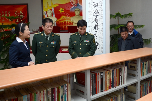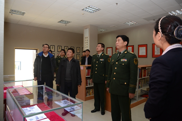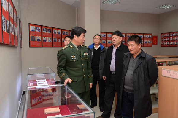 12月3日上午,武警工程大學(xué)軍事基礎(chǔ)教育學(xué)院政委曹學(xué)義、副院長王勇一行6人專程來到我校,考察商洛紅色文化資料館,就紅軍長征史料進(jìn)行調(diào)研和交流,并向我校捐贈圖書。黨委副書記、副校長范新會,副校長劉寶盈熱情接待了曹學(xué)義一行。