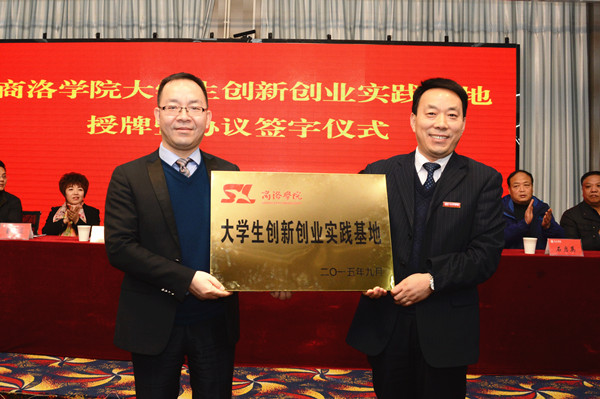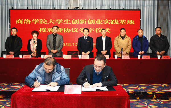 12月24日下午,我校與陜西森弗天然制品有限公司在商州電子商務(wù)產(chǎn)業(yè)孵化基地簽署《校企合作共建大學(xué)生創(chuàng)新創(chuàng)業(yè)實(shí)踐基地協(xié)議》。校黨委副書記彭虎軍與森弗公司董事長(zhǎng)金新康共同為大學(xué)生創(chuàng)新創(chuàng)業(yè)實(shí)踐基地揭牌。簽字授牌儀式由教務(wù)處處長(zhǎng)李超主持。