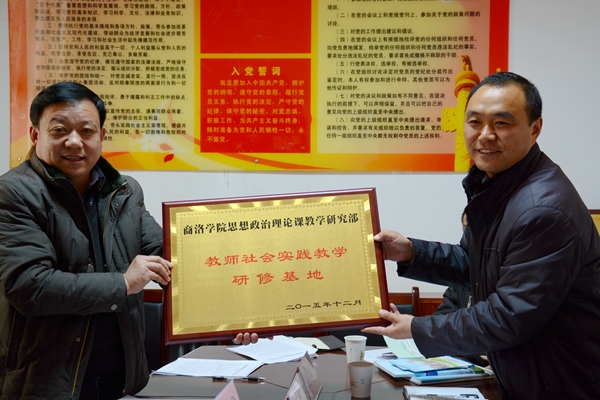 為了認(rèn)真貫徹落實(shí)《商洛學(xué)院關(guān)于印發(fā)<商洛學(xué)院根植地方行動(dòng)計(jì)劃實(shí)施辦法(試行)>》文件精神,切實(shí)實(shí)現(xiàn)教師進(jìn)政府、進(jìn)社區(qū)、進(jìn)鄉(xiāng)村,不斷提高我校思政課教師深入基層、服務(wù)地方的能力,2016年1月6日,思想政治理論課教學(xué)研究部組織部分教師前往洛南縣陜南移民安置工作辦公室、洛南縣四皓中學(xué),舉行教師實(shí)踐研修基地掛牌儀式,積極開展校地合作。
