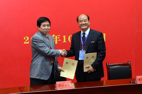 10月23日,在商洛學(xué)院創(chuàng)建一流應(yīng)用型本科院校動員大會上,西北大學(xué)黨委副書記、副校長賈明德與我校黨委書記、校長劉建林代表雙方簽訂《西北大學(xué)對口支援商洛學(xué)院協(xié)議書》。