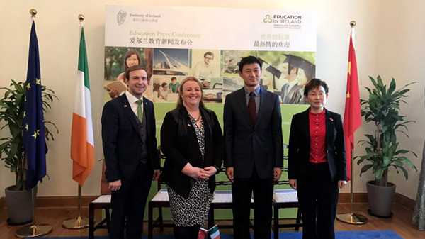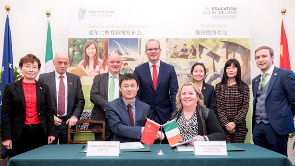 3月15日,愛(ài)爾蘭高等教育新聞發(fā)布會(huì)在愛(ài)爾蘭大使館舉行,愛(ài)爾蘭高校與多所中國(guó)高校簽署高等教育合作備忘錄。愛(ài)爾蘭副總理兼外交部與貿(mào)易部部長(zhǎng)西蒙·科文尼、愛(ài)爾蘭駐華大使李修文、中國(guó)教育國(guó)際交流協(xié)會(huì)副秘書長(zhǎng)沈雪松、副校長(zhǎng)劉勇以及合作高校領(lǐng)導(dǎo)出席發(fā)布會(huì)。劉勇代表學(xué)校與愛(ài)爾蘭高威梅奧理工學(xué)院副校長(zhǎng)凱特·努恩簽署了合作備忘錄,這是我校首次與愛(ài)爾蘭高校簽訂合作協(xié)議。