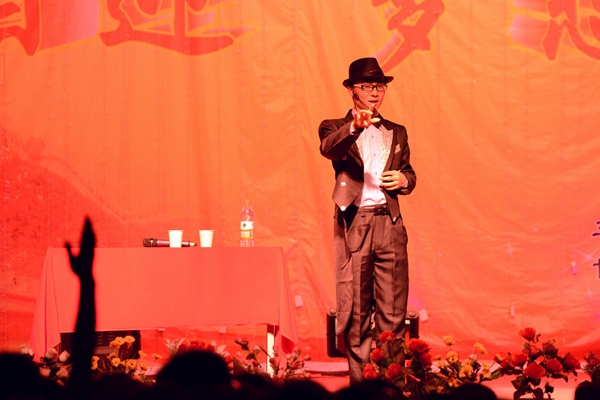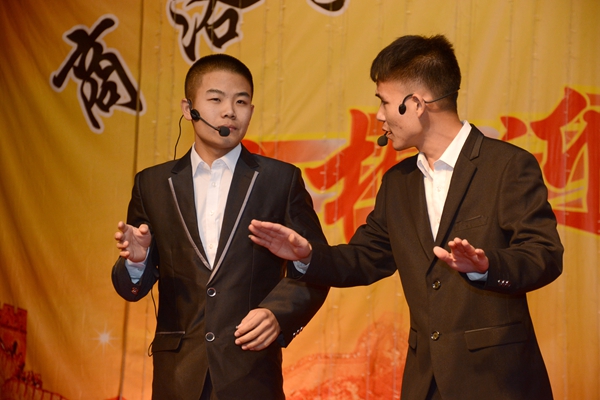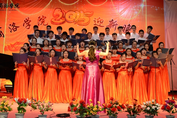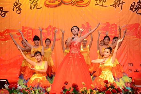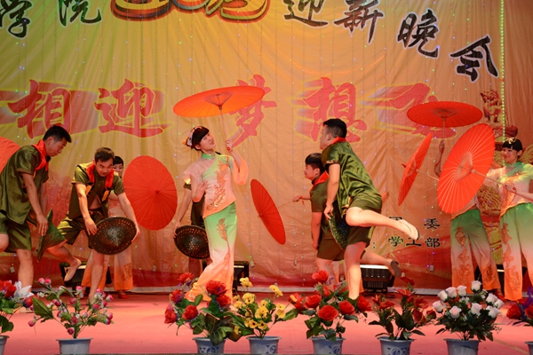 晚會以“心相迎 夢想飛”為主題。在大合唱《游擊隊隊歌》和校歌《正道直行做棟梁》的動人旋律唱中拉開帷幕。整場晚會形式多樣,現(xiàn)代與古典同臺,聲樂與器樂相和,浪漫與詼諧相伴。歌舞、相聲、朗誦、魔術(shù)、樂器聯(lián)奏等精彩的節(jié)目為觀眾呈現(xiàn)了豐盛的視聽盛宴。為紀(jì)念中國人民抗戰(zhàn)暨世界反法西斯戰(zhàn)爭勝利70周年,由藝術(shù)學(xué)院劉威老師帶來的《紅歌聯(lián)唱》將整場晚會渲染出了紅色的氣息,激昂的歌聲與清靈的鋼琴悠揚的笛聲相宜相合贏得了一陣陣贊美與掌聲。城鄉(xiāng)規(guī)劃與建筑工程學(xué)院學(xué)生帶來的相聲《地理圖》用毫不遜色于銀幕相聲的精彩表演給整個會場帶來了不息笑聲與不絕的掌聲。由商洛劇團(tuán)的演員帶來的商洛花鼓戲《夫妻觀燈》表現(xiàn)了商洛本地戲曲的魅力,也預(yù)示了我校戲曲學(xué)院的蓬勃發(fā)展。最終,在一首《共筑中國夢》的師生歌伴舞中,整場晚會步入高潮,在陣陣掌聲中落下帷幕。