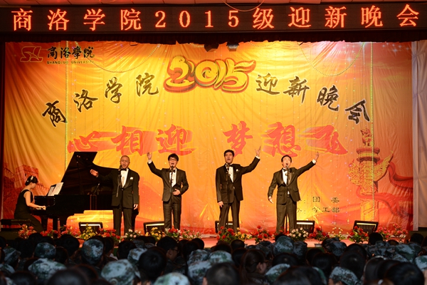 為迎接2015級新生的到來,展現(xiàn)我校學(xué)子風(fēng)采,9月20日至22日,由校團(tuán)委、學(xué)工部主辦的2015級迎新晚會在我校大學(xué)生活動中心隆重上演。校領(lǐng)導(dǎo)張景書、劉建林、王思懷、彭虎軍、范新會、劉寶盈,商洛市委常委、副市長武文罡、市政府副秘書長宋奇志、市委宣傳部副部長、文明辦主任李丹峰、商州區(qū)區(qū)長張國瑜,以及商丹園區(qū)黨工委、商洛市教育局、商洛移動公司、中國郵政商州分局、商洛電信商州分公司相關(guān)領(lǐng)導(dǎo)與我校2400余名師生一同觀看了晚會。