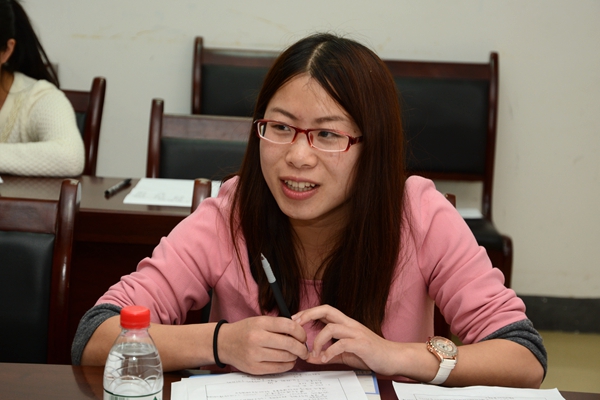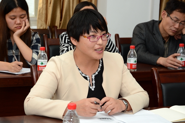 交流中,我校2011年青年教師教學技能競賽第一名獲得者許薇,2015年新入職青年教師鐘思遠;2012年青年教師教學技能競賽第一名獲得者趙玉霞,2015年新入職青年教師曹寶月分別作了發(fā)言。