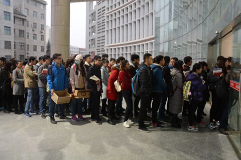 早上7點,圖書館外已經(jīng)排起了長隊。