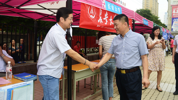 6月26日,我校舉辦了2019年校園開放日暨陜西高校招生咨詢會。我校與浙江大學(xué)、西安交通大學(xué)、西北工業(yè)大學(xué)、西北農(nóng)林科技大學(xué)、西北大學(xué)、長安大學(xué)、西安郵電大學(xué)、西交利物浦大學(xué)等30余所省內(nèi)外高?,F(xiàn)場為廣大高考考生及家長提供招考咨詢服務(wù)。校長范新會到現(xiàn)場看望慰問各校工作人員并與考生及家長進行了親切交談。