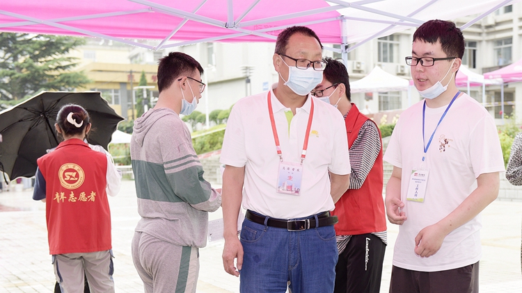 考試當(dāng)日,副校長劉寶盈和商洛市招辦副主任尚軍田在我校教務(wù)處負(fù)責(zé)人的陪同下,深入身份核驗(yàn)區(qū)、體溫檢測區(qū)、候考區(qū)、引導(dǎo)區(qū)、考務(wù)工作辦公室等各個(gè)工作點(diǎn)檢查指導(dǎo)考試工作,每到一處都詳細(xì)詢問檢查,叮囑各崗位工作人員精心做好各項(xiàng)考務(wù)工作,并對堅(jiān)守考務(wù)一線的工作人員和學(xué)生志愿者進(jìn)行了慰問。