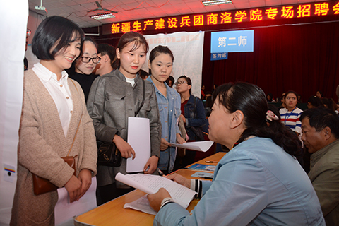 10月17日,由新疆生產(chǎn)建設(shè)兵團(tuán)13個(gè)師30多個(gè)團(tuán)場及企業(yè)組成人才招聘團(tuán)來我校舉辦專場招聘會。我校畢業(yè)生、商洛職業(yè)技術(shù)學(xué)院畢業(yè)生參加專場招聘會,部分學(xué)生現(xiàn)場與用人單位簽約或達(dá)成就業(yè)意向。