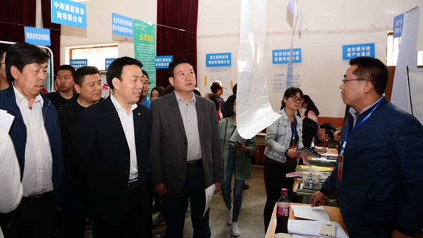 招聘會期間,校黨委副書記彭虎軍帶領(lǐng)相關(guān)部門負責人深入招聘會現(xiàn)場,了解用人單位的招聘需求和畢業(yè)生的求職意向,并與商洛市人社局領(lǐng)導就校地聯(lián)合共同做好畢業(yè)生就業(yè)創(chuàng)業(yè)工作進行了交流。