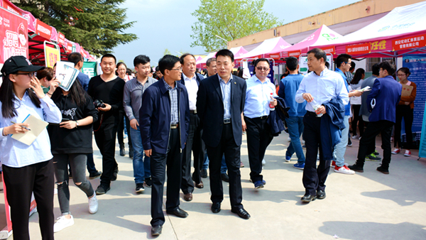 在學(xué)生處、團(tuán)委等部門負(fù)責(zé)人的陪同下,彭虎軍與用人單位領(lǐng)導(dǎo)、參會學(xué)生親切交流,了解用人單位人才需求、招聘情況和學(xué)生應(yīng)聘求職情況;同時要求各相關(guān)部門要認(rèn)真、熱情、周到做好接待服務(wù)工作,搭建高質(zhì)量就業(yè)平臺。