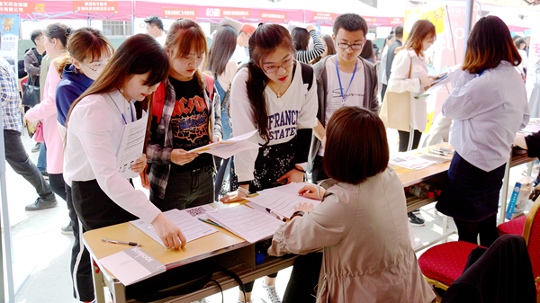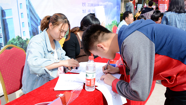 招聘會上,來自江蘇、新疆、北京、上海、山西等地的161家省內(nèi)外企事業(yè)單位、學(xué)校及培訓(xùn)機(jī)構(gòu)進(jìn)行了現(xiàn)場洽談?wù)衅浮8饔萌藛挝惶峁┑木蜆I(yè)崗位涉及基礎(chǔ)教育、應(yīng)用化工、生物醫(yī)藥、工程管理、電子技術(shù)、財務(wù)會計等諸多行業(yè)領(lǐng)域,共計8800余個招聘崗位,基本覆蓋我校畢業(yè)生所學(xué)專業(yè)。在前期的大力宣傳和有效組織下,我校應(yīng)往屆畢業(yè)生及來自省內(nèi)7所高校的畢業(yè)生共計3000多人參加了招聘會。