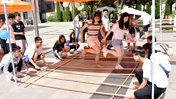 ——舉辦素質(zhì)拓展活動(dòng),傳承體育文化精神。在校體育場(chǎng)開展以“卓越團(tuán)隊(duì),共贏未來”為主題的素質(zhì)拓展活動(dòng)?;顒?dòng)共設(shè)置了珠行萬里、搭橋過河和踩氣球三個(gè)項(xiàng)目。各組成員滿懷激情,奮力拼搏,用平穩(wěn)的心態(tài)和良好的協(xié)作能力完成了各項(xiàng)比賽,深化大學(xué)生“走下網(wǎng)絡(luò),走出宿舍,走向操場(chǎng)”主題課外體育鍛煉活動(dòng),將德育與智育、體育、美育有機(jī)結(jié)合,寓思想政治教育于體育文化活動(dòng)中,強(qiáng)化校訓(xùn)校史育人功能,營(yíng)造了良好的校風(fēng)和學(xué)風(fēng)。