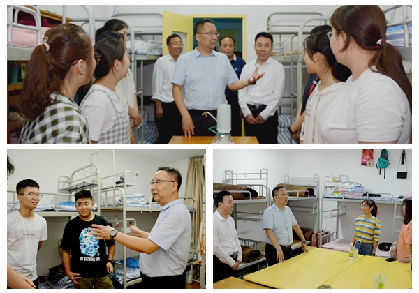 9月3日晚,校黨委書記龍治剛、黨委副書記彭虎軍和工作人員一起深入學生宿舍,看望慰問我校2019級新生,給他們送去關(guān)懷與問候。