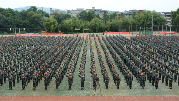 “浩然書生氣,沙場秋點兵?!?月18日,我校舉行2019級學生軍訓會操暨總結大會,檢閱2019級學生軍訓成果,并對軍訓中表現(xiàn)突出的先進集體與先進個人進行表彰。校領導龍治剛、范新會、王思懷、彭虎軍、劉寶盈、劉勇,中國人民武裝警察部隊商洛支隊副參謀長、商洛學院2019級學生軍訓團團長呂喆中校出席大會。各二級學院黨政主要負責人、有關職能部門負責人、全體2019級學生及輔導員參加了大會。大會由黨委副書記彭虎軍主持。