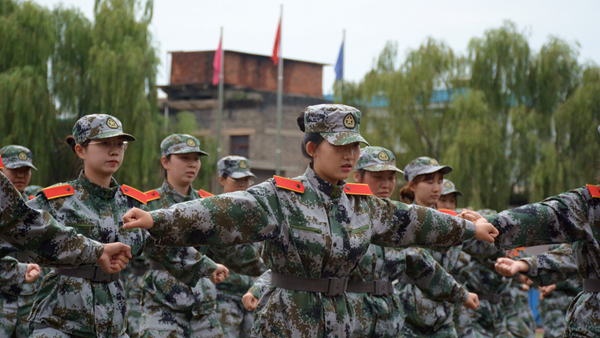 分列式結束后,學生依次進行了匕首操、五步拳匯報表演。女兵們表演的匕首操動作鏗鏘有力、一氣呵成,盡顯“鏗鏘玫瑰”風姿。全體參訓學生共同完成的五步拳表演,出拳虎虎生風、剛勁有力,每一個動作都干凈利落,揮舞間游刃有余,博得大家的陣陣喝彩。